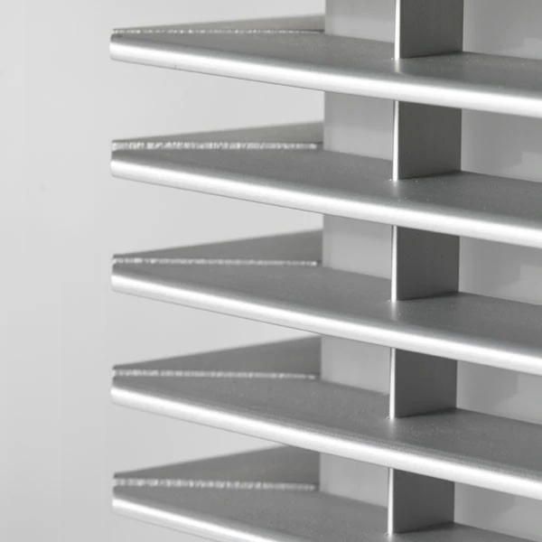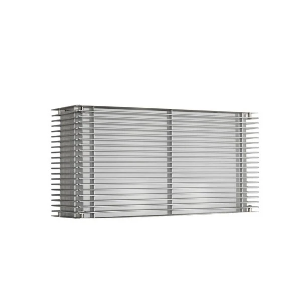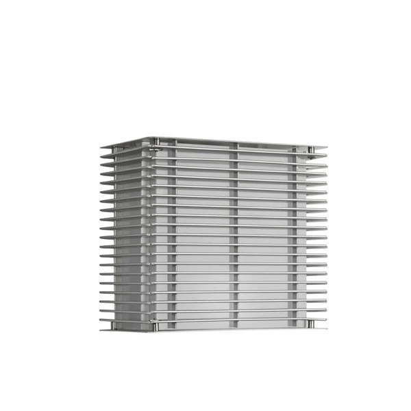 Cette applique murale évoque les lanternes japonaises avec ses fines lames en aluminium anodisé argent qui diffusent une lumière tamisée et chic.