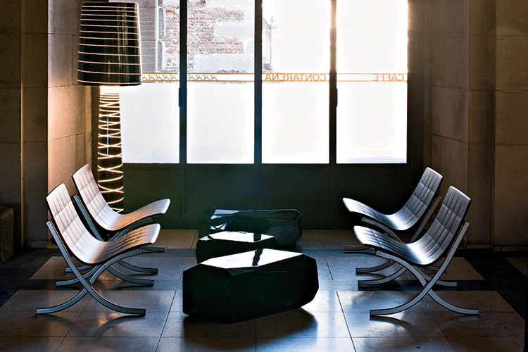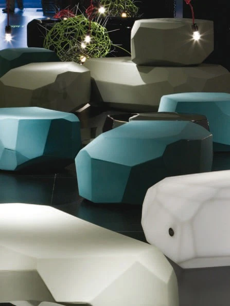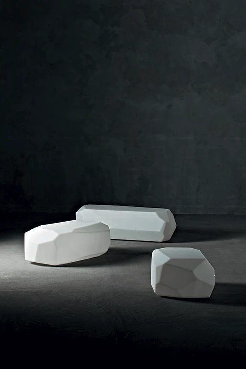 L’Assise/Table Météor Large, imaginée par le designer Arik Lévy pour Serralunga, s’inspire du minéral.