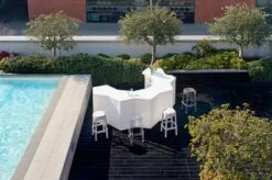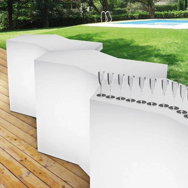 Le Bar Iceberg de chez Pedrali est un élément design et pratique à installer en extérieur comme en intérieur, dans un espace public comme privé. Idéal pour aménager un espace en plein air, à côté d’une piscine, sur une terrasse ou dans une salle commune, ce bar réalisé en polyéthylène haute densité et injecté en roto-moulage est ultra résistant et contemporain. Comptoir, table haute et rangement, ce bar est un produit pratique & déco! Iceberg est un module en forme de double pentagone qui s’installe seul ou se multiplie à l’infini pour créer des aménagements et combinaisons multiples.Tablettes internes et plateau supérieur sont disponibles en articles complémentaires pour équiper Iceberg. Il est également possible d’installer un kit d’éclairage pour transformer son Bar Iceberg en un sublime bar lumineux et ainsi illuminer son extérieur de manière originale.