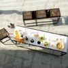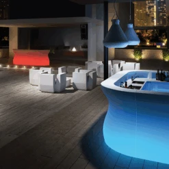 Le Bar Lumineux Modulable Bartoloméo Module Linéaire est un bar lumineux tendance conçu par Joe Velluto pour la marque italienne Plust. Comptoir de bar, console ou table haute, ce bar s’adaptera à tous vos besoins. Conçu pour un usage extérieur, il vous permettra de créer un espace convivial afin de passer des moments inoubliables entre amis ou en famille. Le Bar Bartolomeo s’équipe d’un ou plusieurs Kit lumineux, il est possible d’installer de 1 à 3 kits lumineux dans un module de bar selon l’intensité de lumière souhaitée (kit lumineux vendu séparément à l’unité en article complémentaire). Il est également possible d’intégrer un kit de 4 roues (dont 2 avec freins), des étagères et un plateau en polyéthylène vendus en option pour rendre votre bar plus fonctionnel. Le module linéaire peut s’associer avec le Bar Lumineux Modulable Bartolomeo Module d’Angle afin de créer un bar arrondi. A vous de personnaliser votre bar Bartolomeo au gré de vos envies!