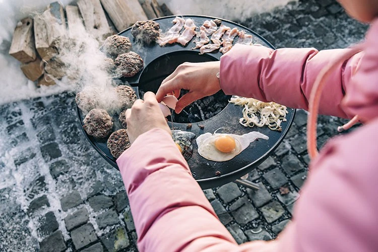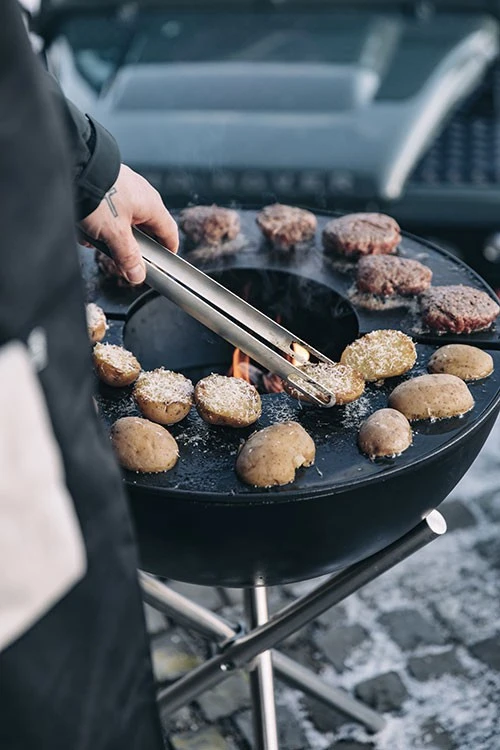 En position neutre, Bowl peut faire office de barbecue avec zone de cuisson et de grill (grâce aux accessoires Grille pour Braséro Bowl et Plancha pour Braséro Bowl). En position relevée, Bowl invite à la détente près du feu, en diffusant son agréable chaleur vers l’avant.