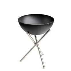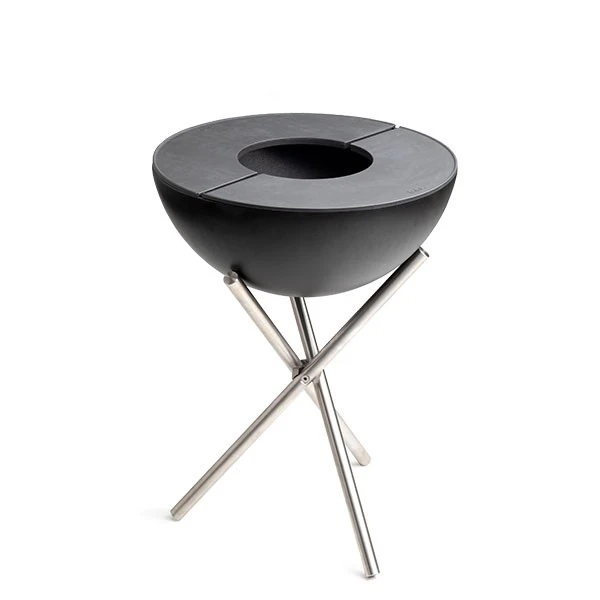 Le Braséro Bowl avec Trépied de chez Höfats est un braséro non seulement design mais aussi fonctionnel. Son hémisphère et son foyer en acier émaillé se marient superbement bien avec son trépied en acier inoxydable. Ce braséro en forme de demi sphère amovible, délicatement posée sur son trépied, semble comme planer dans les airs. L’hémisphère peut s’orienter comme bon vous semble, soit totalement couchée soit relevée pour se protéger les flammes du vent.