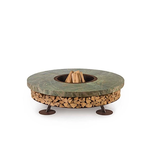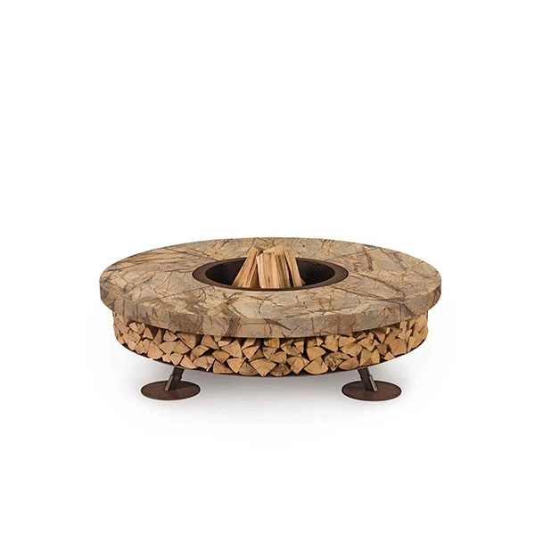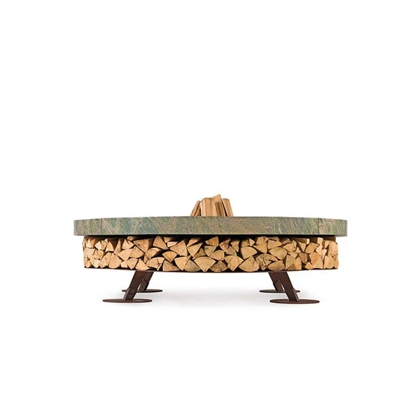 Le design et l’art se sont mélangés pour former un nouvel accessoire mobilier dont la mission est très simple : réunir les personnes. Dans le jardin, à la piscine, aux abords des hotels, des restaurants, des lieux touristiques, qu’importe l’espace… ce Braséro d’Extérieur créera toujours une athmosphère chaleureuse et intimiste autour de son feu. Son petit plus : le porte-buche intégré qui vous offre un espace de rangement utile et fort pratique. La petite astuce déco est de jouer avec l’irrégularité des morceaux de bois afin de donner un cachet unique à cette grande pièce du design. Disponible en 2 coloris, le Braséro Ercole Rainforest Small a été conçu pour tous les goûts. Construit en acier et en marbre, ce foyer à bois n’est pas seulement utile et pratique, il est également un mobilier extérieur décoratif qui en séduira plus d’un!Ce braséro existe également en version Braséro Ercole Rainforest Large