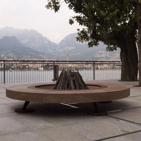 Le Braséro Rondo de chez AK47 Design est juste l’expression d’une création élégante et moderne du designer Ivano Losa. Surdimensionné et polyvalent, ce braséro convient parfaitement pour aménager un outdoor contemporain. Rondo rend unique un jardin ou une terrasse et propose ainsi une ambiance lounge pour vos soirées estivales ou hivernales. Réalisé en métal, ce braséro est spécialement conçu pour un usage 100% en extérieur et ceci avec une totale résistance aux UV et aux intempéries. La structure de Rondo est réalisée en Trachyte (une pierre fine et rare, aux tons de noix et aux douces et chaleureuses nuances rosées). La matière de la structure permet de s’asseoir sans risque autour du feu. Rondo peut être aussi une table basse originale pour aménager votre aménagement en intérieur ou en extérieur avec modernité.