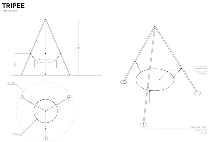 Le Braséro Tripee de chez AK47 Design est un braséro nomade ultra design inspiré du typique tipi indien, élément social véhiculant toute la magie du feu. Ce produit unique est constitué d’un foyer, une plaque en acier, raccordé à une structure tubulaire. Rappelant les émotions du passé, Tripee arbore une légèreté visuelle qui lui permet de s’installer dans de nombreux contextes, à la fois privés comme publics. Son foyer peut être postionné à différentes hauteurs, ce qui permet un usage adapté à chaque besoin.