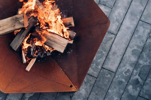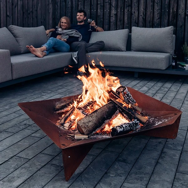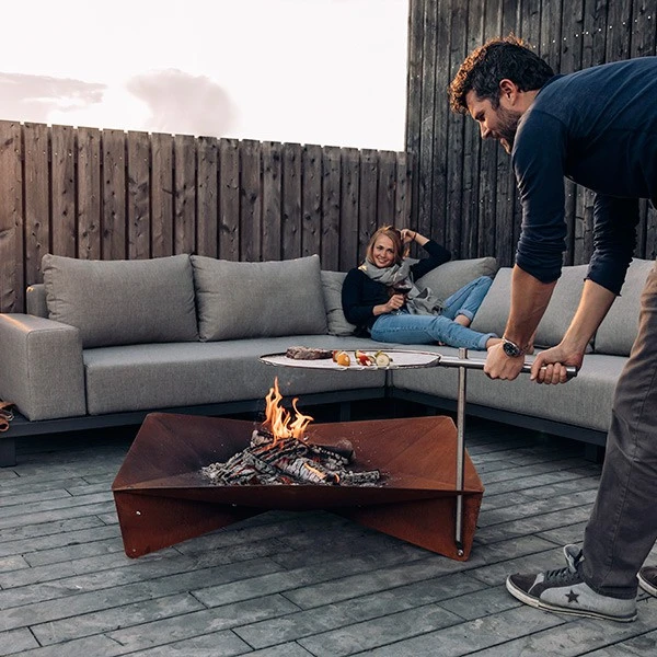 Contrairement à l’acier standard qui se dégrade à cause de la corrosion, l’acier corten développe une couche protectrice en-dessous de la formation de rouille assurant ainsi une forte durabilité au produit. Cet acier corten est résistant aux intempéries, recyclable et donc écologique. Le braséro Triple n’aura pas besoin de vernissage pour conserver une patine unique.