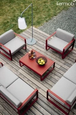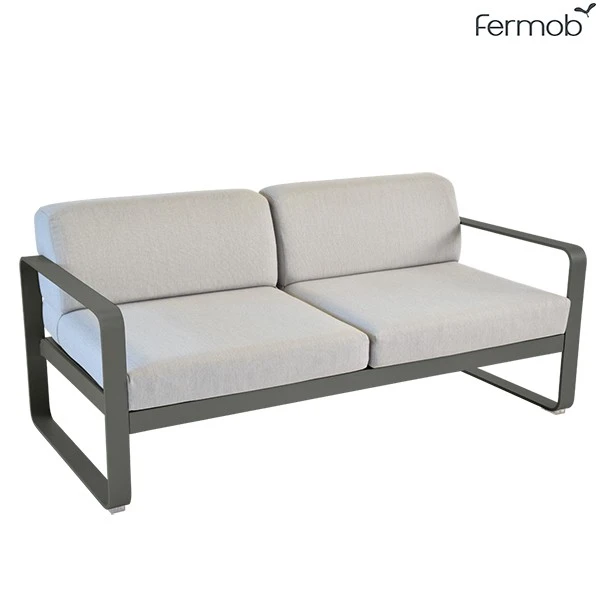 Le CanapĂ© 2 places Bellevie Coussins Gris Flanelle de chez Fermob est un canapĂ© dessinĂ© par Patrick PAGNON et Claude PELHAITRE qui n’a rien Ă envier Ă un canapĂ© indoor. Grâce Ă ce canapĂ© design, il est possible d’amĂ©nager un coin salon de jardin aussi confortable qu’un salon d’intĂ©rieur.