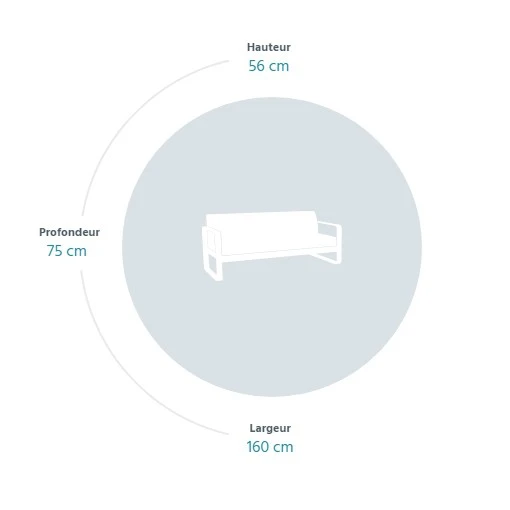 Sa structure en aluminium recouvert de peinture poudre anti-UV assure au canapĂ© Bellevie une haute rĂ©sistance aux conditions mĂ©tĂ©orologiques tout en lui confĂ©rant une lĂ©gèretĂ© non nĂ©gligeable pour le dĂ©placer facilement.Â