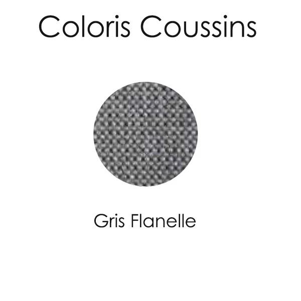 De coloris gris flanelle, ces coussins se marient à la perfection avec une sélection de coloris recommandés par Fermob. Cette sélection est réalisée pour une parfaite harmonie de couleurs. Les autres coloris de la palette Fermob sont disponibles sur demande, simplement, ils ne font pas partie de la recommandation de structure à associer au coloris gris flanelle.