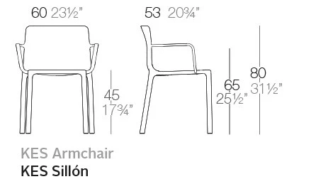 La Chaise avec Accoudoirs Kes de chez Vondom est une chaise de repas avec accoudoirs pratique et design. Cette chaise fonctionnelle arbore un design sobre et efficace. Ses lignes arrondies et douces lui confèrent une élégance en toute simplicité. Réalisée en polypropylène injecté, cette chaise résiste aux intempéries pour un usage en extérieur au fil des saisons. Kes est une chaise incontournable pour composer un espace de repas contemporain. Cette chaise existe également en version sans accoudoirs avec la Chaise Kes.