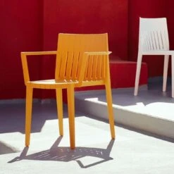 La Chaise Avec Accoudoirs Spritz de chez Vondom a été créée par le groupe de designers Archirivolto Design. Comme son nom l’indique, cette collection est inspirée par l’idée de fraîcheur et de pureté des formes : un mélange entre la linéarité du style européen du nord et la chaleur typique du sud, créant ainsi un dialogue entre intérieur et extérieur. Cette chaise est d’une qualité inégalable grâce à sa matière en polypropylène injecté avec fibre de verre qui lui confère une haute résistance aux intempéries, aux UV et aux températures extrêmes. Ce mobilier aux formes rigoureuses donnera une touche ultra design aussi bien à vos espaces intérieurs qu’extérieurs, tout en apportant une ambiance conviviale. Simple mais contemporaine, la chaise s’adaptera à tous les espaces.