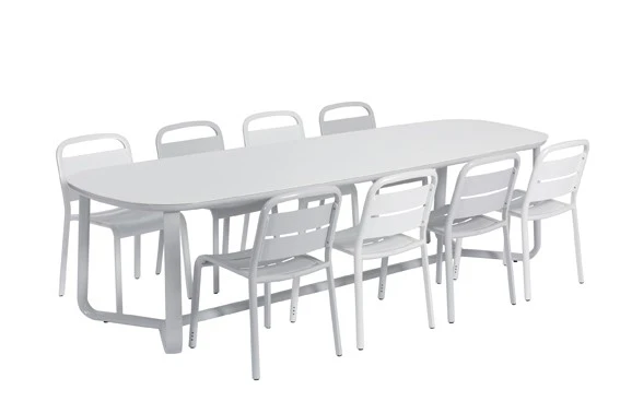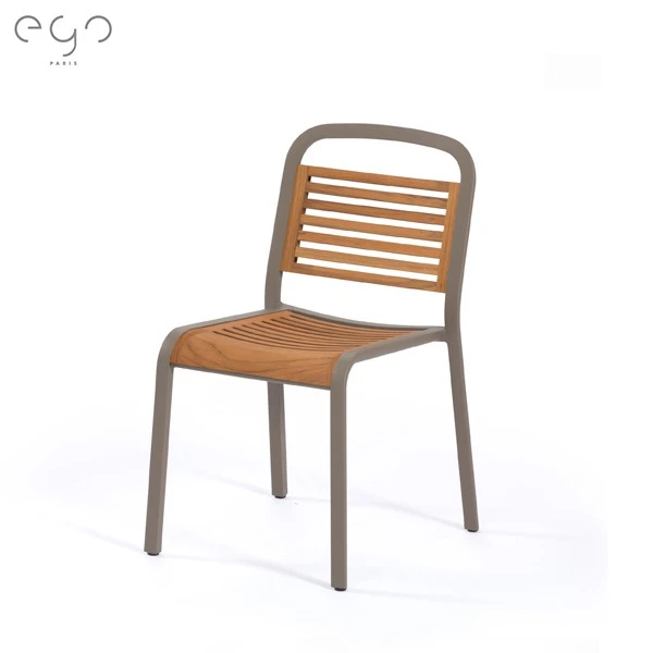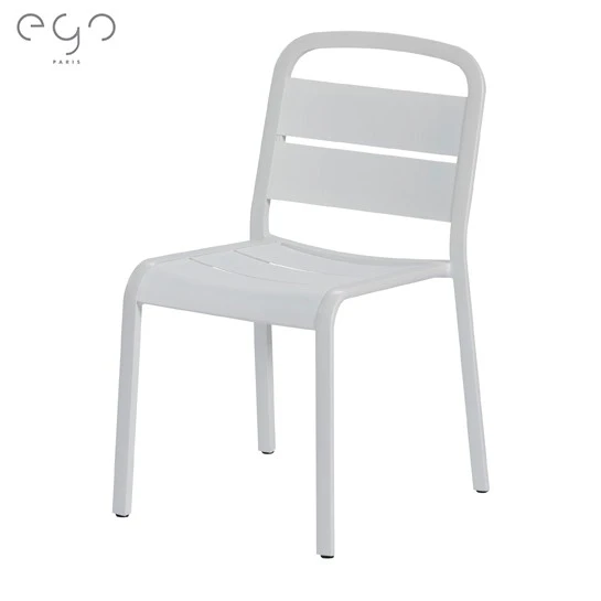Avec sa structure en aluminium thermo-laqué avec laque semi-gloss (brillante lisse) ou texturée et ses lattes en aluminium thermo-laqué avec laque texturée ou ses lattes en teck, cette chaise de repas arbore un look à la fois simple et contemporain.