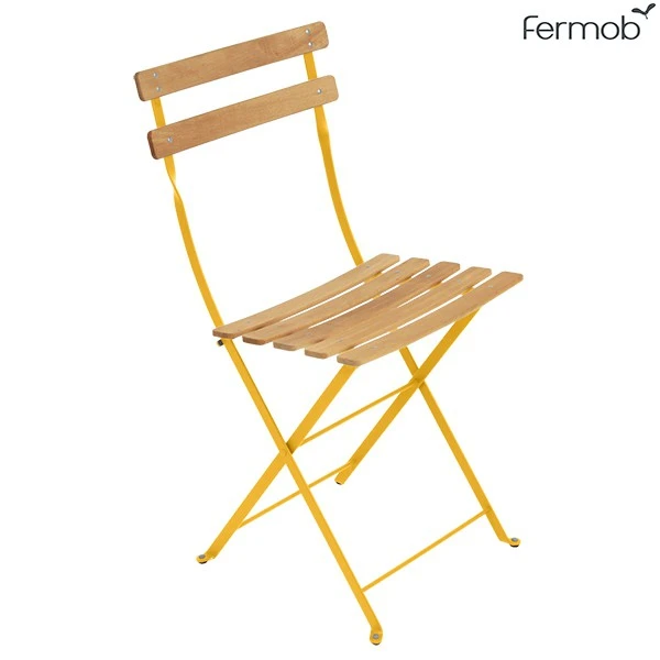 Créée à la fin du 19ème siècle, la chaise pliante Bistro, simple et solide, remporte un véritable succès auprès des limonadiers de l’époque. De nos jours, la Chaise Bistro n’a rien perdu de son charme: revisitée par la marque Fermob, cette chaise est d’autant plus ingénieuse et tendance. Pratique par son côté pliant, elle n’en est pas moins ultra déco avec sa large palettes de coloris. Réalisée en acier recouvert de peinture poudre anti-UV, en hêtre traité pour ses lattes galbées et acier électrozingué pour ses traverses, la Chaise Métal Bistro est résistante pour un usage extérieur sans crainte. Cette chaise de jardin s’adapte à tout espace extérieur, restreint comme plus vaste, et se plie tout simplement une fois qu’elle n’est plus utilisée.