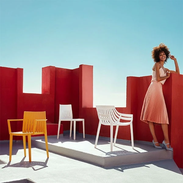La Chaise Spritz de chez Vondom a été créée par le groupe de designers Archirivolto Design. Comme son nom l’indique, cette collection est inspirée par l’idée de fraîcheur et de pureté des formes : un mélange entre la linéarité du style européen du nord et la chaleur typique du sud, créant ainsi un dialogue entre intérieur et extérieur. Cette chaise est d’une qualité inégalable grâce à sa matière en polypropylène injecté avec fibre de verre qui lui confère une haute résistance aux intempéries, aux UV et aux températures extrêmes. Ce mobilier aux formes rigoureuses donnera une touche ultra design aussi bien à vos espaces intérieurs qu’extérieurs, tout en apportant une ambiance conviviale. Simple mais contemporaine, la chaise s’adaptera à tous les espaces.