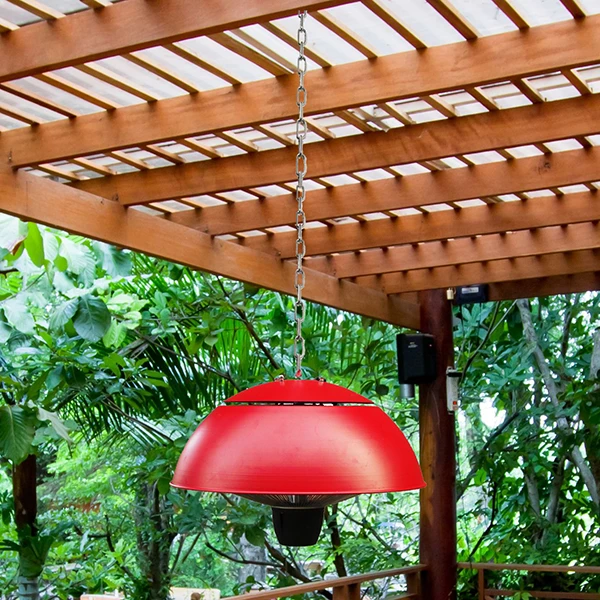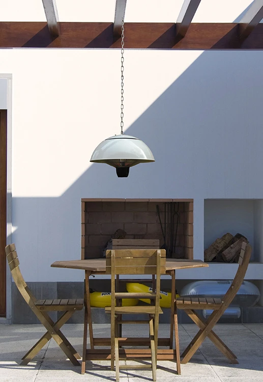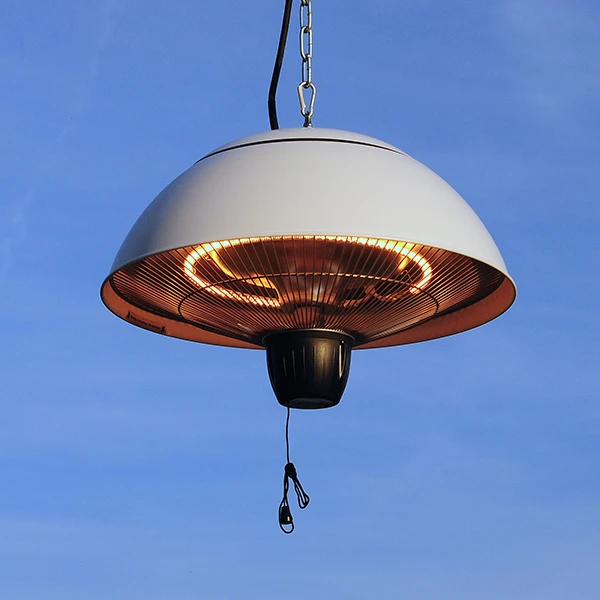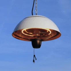 Le Chauffage d’Extérieur Halogène Suspendu 1500Wde chez OutTrade est un chauffage à suspendre aussi bien en extérieur qu’en intérieur à un plafond ou à une poutre. Ce chauffage halogène chauffe le corps et non l’air pour un confort en extérieur optimal même lors de soirées un tantinet fraîches. Ses matériaux aluminium, acier inoxydable et plastique ainsi que sa protection IP24 contre les éclaboussements et les projections d’eau lui confèrent une haute résistance en extérieur. Ce chauffage d’extérieur, en plus de diffuser une chaleur agréable, éclaire l’espace d’une lumière d’ambiance tamisée. Avec ses 3 coloris de coque disponibles, rouge, blanc, gris anthracite, ce chauffage suspendu est ultra-déco. Pour l’allumer et l’éteindre, rien de plus simple, il suffit de tirer sur son cordon.
