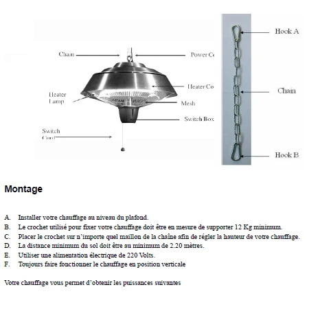 Existe également en version Chauffage d’Extérieur Halogène Suspendu 2100W