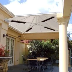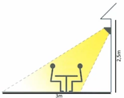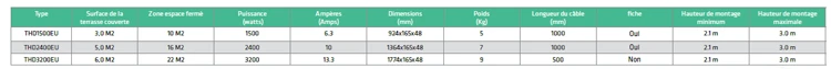 Il est préférable de l’utiliser sous un toit afin d’éviter la perte de chaleur. Son efficacité lui permet de chauffer une terrasse en 10 minutes, son panneau de rayonnement atteint une température d’eau moins 350°C. Pour des raisons de sécurité, il est indispensable d’installer le chauffage à une hauteur minimum de 2,10m.