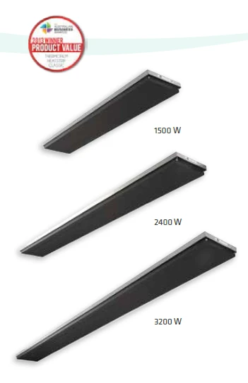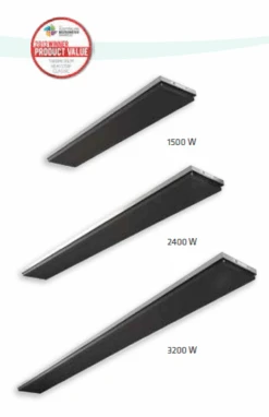 Décliné en 3 dimensions et puissances, 1500W, 2400W et 3200W, le radiant Heatstrip Design s’adapte aux espaces et aux contraintes de chacun.