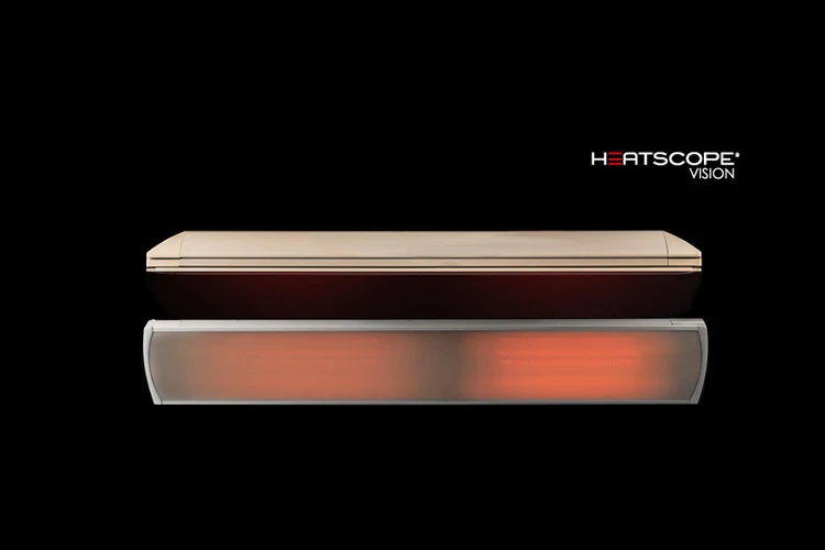 Le Chauffage Radiant Heatscope Vision de Heatscope est un chauffage d’extérieur radiant par infra rouge spécialement conçu pour l’aménagement des zones extérieures. Terrasses, espaces de restauration extérieurs, tentes, pavillons, belvédères, propriété résidentielles, terrasses et balcons couverts, zones événementielles et expositions, zones fumeurs, vérandas, jardins d’hivers,… toutes les zones extérieures peuvent accueillir le radiant Heatscope. Ce radiant est disponible en 3 puissances différentes, de 1600W à 3200W, il s’adaptera à n’importe quel surface extérieure. Ce radiant est conçu sur les bases de la technologie spéciale à infrarouge invisible qui permet d’obtenir une température chaude, agréable et économique. Respectant parfaitement les normes extérieures, ce chauffage radiant fabriqué avec un corps Titane (pour les radiants noirs) ou en aluminium laqué (radiants blancs), chauffe une surface jusqu’à 6,40m en offrant la même sensation que la chaleur produite par les rayons du soleil. Vitre de protection en vitrocéramique pour plus d’éfficacité et un design ultra moderne. La nouvelle gamme de radiant Heatscope, présente des innovations brevetés: double lampe carbone surface satiné, réflecteur avec arrière ventilé. Le Chauffage Radiant Heatscope Vision se branche directement sur secteur, une télécommande fournie, permet d’éteindre et d’allumer le radiant mais également de varier sa puissance de 100% à 50%.