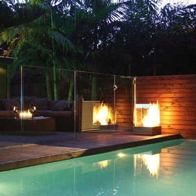La Cheminée d’Extérieur Mini T de chez Ecosmart Fire est parfaite pour les jardins privés, les terrasses de bars et restaurants.Réaliséee en acier inoxydable brossé et composée de paroies en verre renforcé, cette cheminée est parfaitement résistante aux intempéries et aux nuisances extérieures. Le verre trempé qui l’entoure, non seulement accroît l’aspect spectaculaire du feu, mais aussi renforce la sécurité. Comme ses homologues de la gamme extérieure, la Mini T fonctionne à l’éthanol, énergie recyclable eco-friendly, qui permet un usage sans fumée, cendres et suie. Une distance de sécurité de 30cm entre le mur et l’emplacement de la cheminée est indispensable. Mini T apporte une touche de style à tout événements et fêtes en plein air, à tout moment de l’année. En extérieur, il est important de conserver une distance de 2m avec tout objet combustible (arbres, parasols, branches,…) afin d’assurer une utilisation sécuritaire et celà dans toutes les conditions météorologiques.