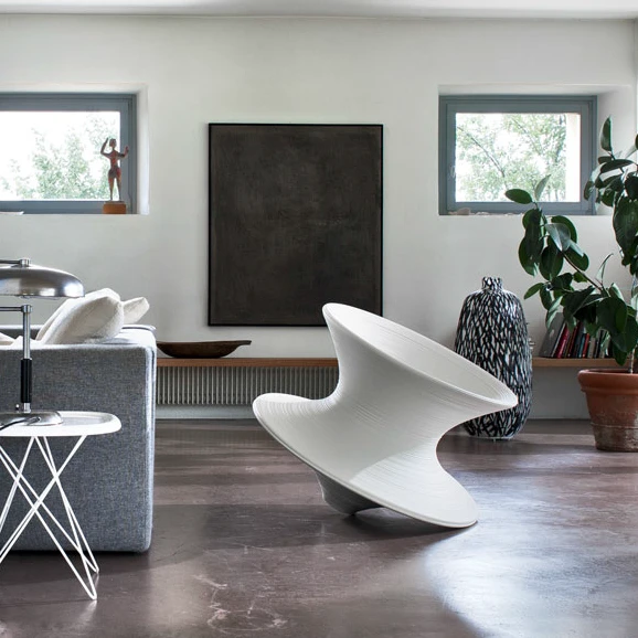 Le Fauteuil Spun de chez Magis a été imaginé par le designer Thomas Heatherwick. Véritable toupie, il arbore un look totalement époustouflant! Sa base arrondie lui permet de tourner, de se balancer et de basculer comme une toupie! Toutefois, n’ayez crainte, vous pourrez tournoyer sans jamais tomber! Design et atypique, ce fauteuil à bascule vous fera voir le confort d’une toute autre façon. En polyéthylène rotomoulé, Spun fera valser votre intérieur ou votre extérieur. Très léger, vous pourrez le transporter en un tour de main!
