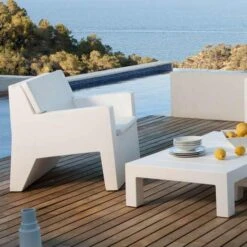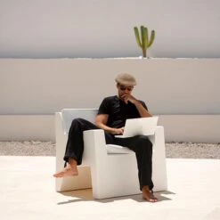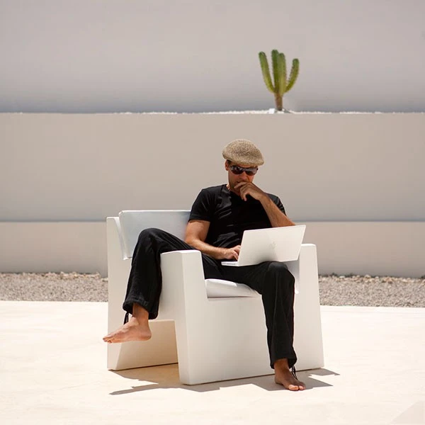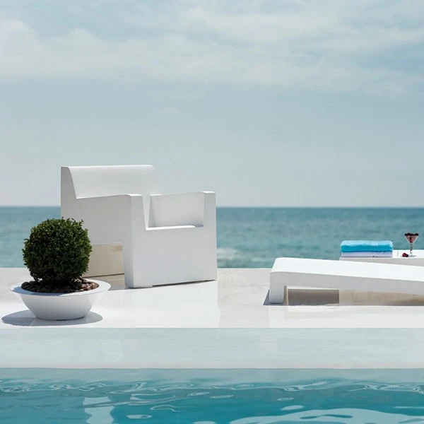 Le Fauteuil Jut de chez Vondom s’identifie par sa forme droite et épurée qui apporte à tout outdoor, un design hors du commun. Imaginé par la team Studio Vondom, ce fauteuil fait partie d’une collection basée sur des lignes pures et angulaires. Une invention moderne et avant-gardise, qui invite à s’asseoir pour profiter d’un maximum de confort! Ce fauteuil 100% recyclable est d’une qualité inégalable grâce à sa matière en polyéthylène rotomoulé qui lui confère une haute résistance aux intempéries, aux UV et aux températures extrêmes. Décliné en 14 coloris tendances, le Fauteuil Jut donnera une touche contemporaine aussi bien à vos espaces intérieurs qu’extérieurs. Installé dans un salon, au bord d’une piscine ou sur une terrasse, il saura apporter élégance et modernité.
