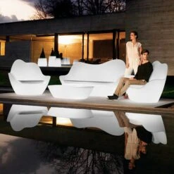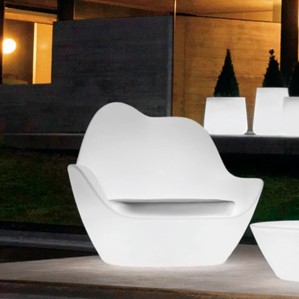 Le Fauteuil Lumineux Sabinas de chez Vondom est une rencontre entre élégance et design. Imaginé par Javier Mariscal, ce fauteuil aux formes fluides fait allusion à des dunes de sable. Une création qui renvoie générosité et convivialité et qui, bien évidemment offre un très grand confort. Ce fauteuil 100% recyclable est d’une qualité inégalable grâce à sa matière en polyéthylène rotomoulé qui lui confère une haute résistance aux intempéries, aux UV et aux températures extrêmes. Le Fauteuil Lumineux Sabinas donnera une touche de modernisme aussi bien à vos espaces intérieurs qu’extérieurs, tout en les illuminant. Sur une terrasse, autour d’une piscine ou bien dans un salon, il embellira avec style votre décoration et vous permettra de vous reposer à n’importe quel moment!Le Fauteuil Lumineux Sabinas est également disponible en version Fauteuil Sabinas.