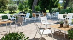 Pratique, le Fauteuil Pilotis Aluminium est empilable, idéal pour un rangement facilité l’hiver.