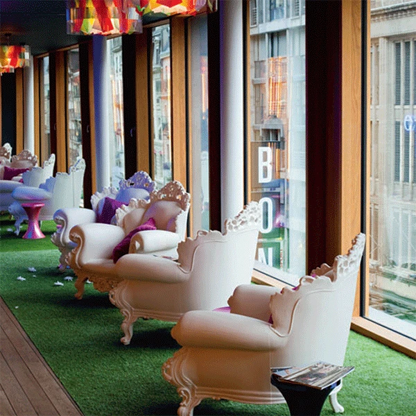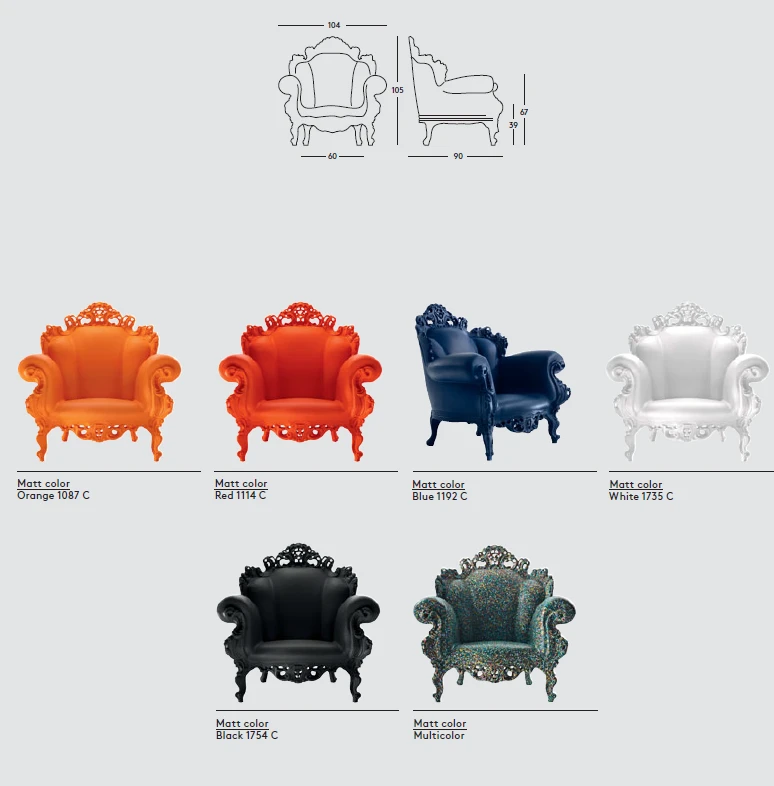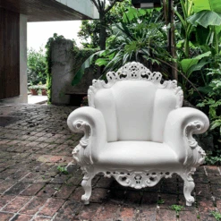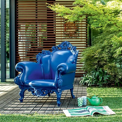 Le Fauteuil Proust imaginé par Alessandro Mendini pour Magis va vous transporter dans un autre temps. Véritable ré-édition du fauteuil baroque ‘Proust’ de Mendini, ce fauteuil est un joyau technique du rotomoulage et une véritable icône du design. Version ultra-comtemporaine de ce fauteuil créé en 1978 et qui a été réalisé en plusieurs versions et différents matériaux dont des versions en céramique et en bronze. Le Fauteuil Proust a fait le tour du monde et a été accueilli dans de nombreux musées. Fauteuil romantique et intemporel, cette nouvelle version du fauteuil baroque apportera une personnalité forte et charismatique à un aménagement extérieur comme intérieur. Offrez vous un produit culte du design en version couleurs unies ou en version multicolore, reproduction du décor original du Fauteuil Proust de 1878.