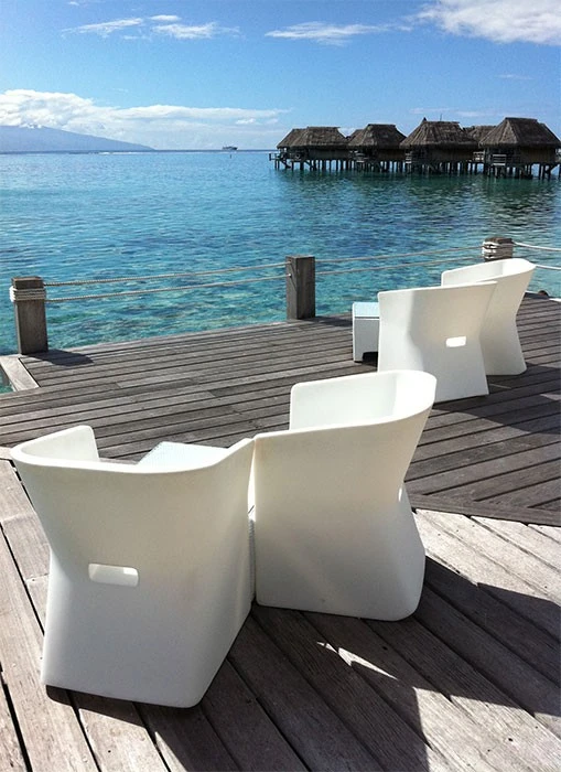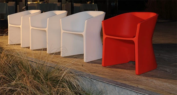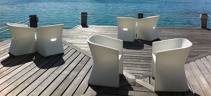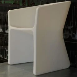 Un jeu sur la lumière, le galbe, et une transition formelle qui donnent un mouvement à la ligne de la chaise.