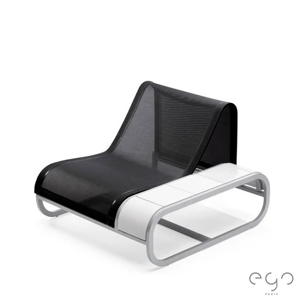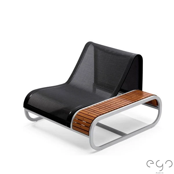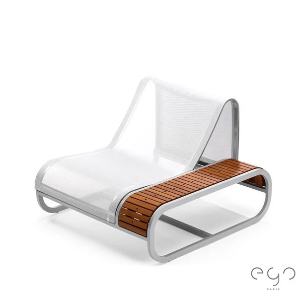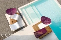 L’alliance de ses matériaux, aluminium et Batyline pour la structure et Corian® ou teck pour la plage, lui confère une élégance et une résistance hors du commun.