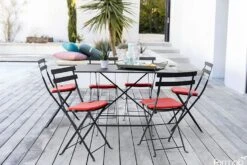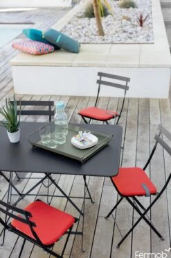 Cette Galette Bistro Color Mix porte bien son nom: avec ses coloris tendances, elle apporte peps et vitamine à un espace repas outdoor. Ces jolies couleurs s’harmonisent tout à fait avec la large palette de couleurs de métal Fermob.