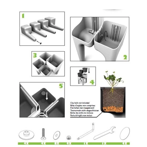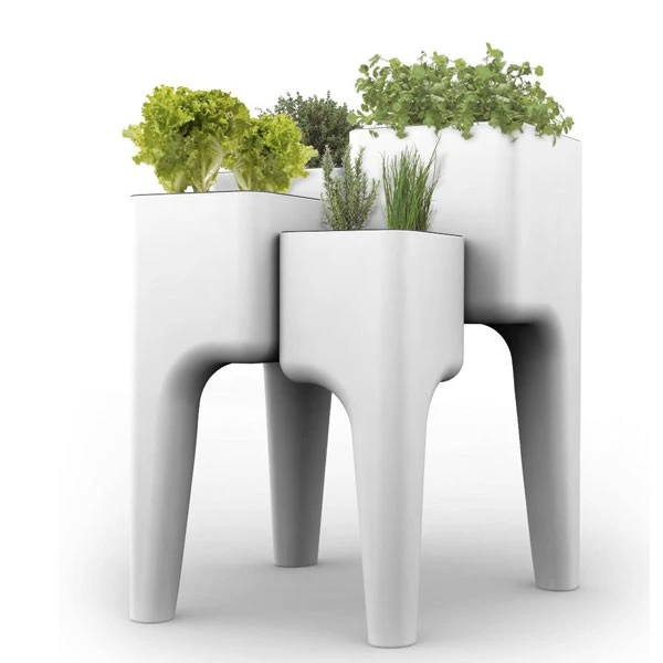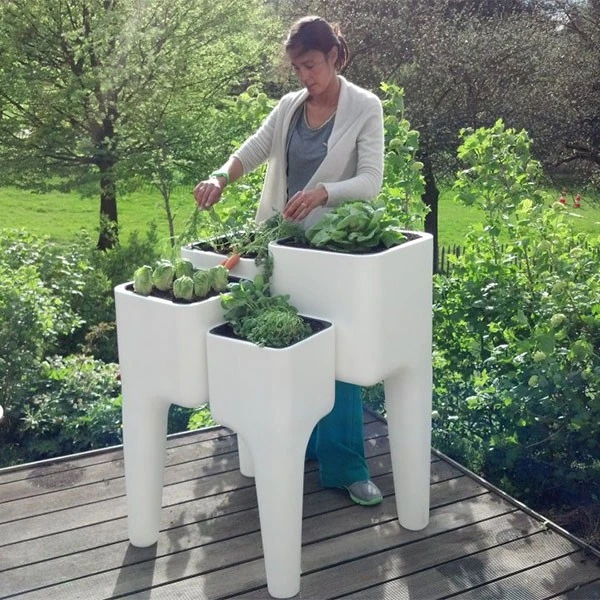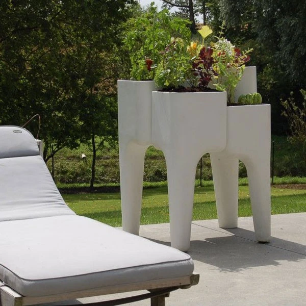 La Jardinière Potagère Kiga XL de chez Hurbz est un concept innovant de potager urbain. Constituée de 4 éléments indépendants, cette solution design et contemporaine est idéale pour aménager son propre potager quelque soit l’endroit où l’on vit. Installée sur une terrasse, un balcon ou un jardin, cette jardinière moderne s’intègrera immédiatement dans son environnement. Ses quatre pots de hauteurs différentes permettent de jardiner sans aucun effort. Le trop plein d’eau est filtré par un tampon géotextile avant d’être évacué par les pieds et de s’écouler parfaitement propre et clair.