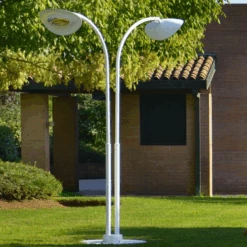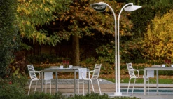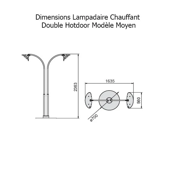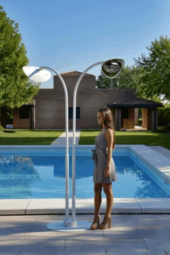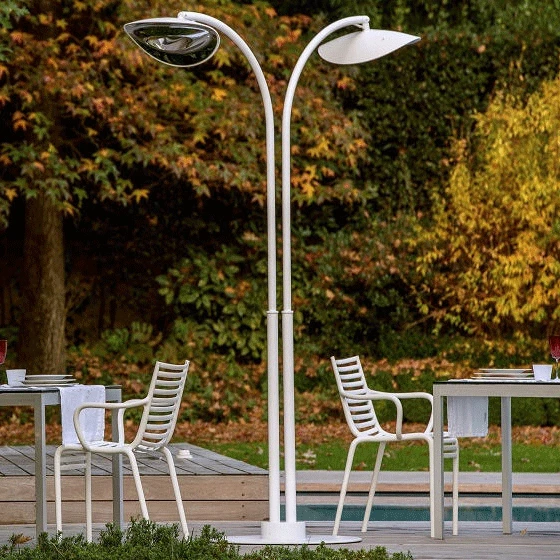 Le Lampadaire Chauffant Hotdoor Double Modèle Arc Moyen, designé par Antonio di Chiano pour Phormalab, fait partie d’une large collection de luminaires chauffants d’extérieur au design ultra contemporain. Très esthétique et performant, le Lampadaire Chauffant Hotdoor a la particularité d’être particulièrement économique puisqu’une 1H de fonctionnement revient à 0.27€ contre 1€ pour tout autre chauffage traditionnel de terrasse. Décliné en 2 types de puissances d’infrarouge: 1500W et 2000W, ce lampadaire chauffant peut donc être utilisé à l’intérieur comme à l’extérieur. La puissance standard est la puissance 1500W qui diffuse de la chaleur sur une surface d’environ 16M² et la puissance 2000W sur environ 20m². Grâce à sa protection IPX5 qui le rend résistant aux éclaboussures d’eau et à la pluie, le chauffage Hotdoor s’installe sur une terrasse ou dans un jardin. Dès son allumage, le chauffage Hotdoor diffuse le maximum de sa capacité et apporte une chaleur agréable, sans bruit et sans odeur. Grâce à son diffuseur inclinable de forme ovale, le Lampadaire Chauffant Hotdoor permet d’orienter la chaleur d’un simple geste. Très design, il est disponible en finitions de coloris: structure blanc/diffuseur blanc, structure blanc/diffuseur noir, structure noir/diffuseur noir, structure noir/diffuseur blanc. Il est également décliné en 3 modèles de bras doubles: modèle court, modèle moyen et modèle long afin de choisir la portée souhaitée. Ce chauffage d’extérieur est idéal pour les restaurants, bars, cafés, piscines, terrasses, centres commerciaux, jardins privés,….
