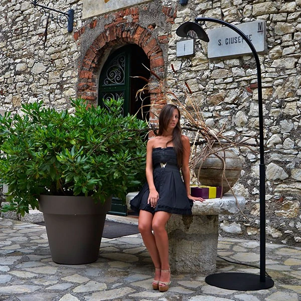 Créé par Antonio di Chiano pour Phormalab, le Lampadaire Chauffant Hotdoor Simple Modèle Arc Long fait partie d’une large collection de luminaires chauffants d’extérieur au design ultra contemporain. Très esthétique et performant, le Lampadaire Chauffant Hotdoor a la particularité d’être particulièrement économique puisqu’une 1H de fonctionnement revient à 0.27€ contre 1€ pour tout autre chauffage traditionnel de terrasse. Décliné en 2 types de puissances d’infrarouge: 1500W et 2000W, ce lampadaire chauffant permet de s’adapter selon les espaces intérieurs comme extérieurs. La puissance standard est la puissance 1500W qui diffuse de la chaleur sur une surface d’environ 16M² et la puissance 2000W sur environ 20m². Grâce à sa protection IPX5 qui le rend résistant aux éclaboussures d’eau et à la pluie, le chauffage Hotdoor s’installe sur une terrasse ou dans un jardin. Dès son allumage, le chauffage Hotdoor diffuse le maximum de sa capacité et apporte une chaleur agréable, sans bruit et sans odeur. Grâce à son diffuseur inclinable de forme ovale, le Lampadaire Chauffant Hotdoor permet d’orienter la chaleur d’un simple geste. Très design, il est disponible en finitions de coloris: structure blanc/diffuseur blanc, structure blanc/diffuseur noir, structure noir/diffuseur noir, structure noir/diffuseur blanc. Il est également décliné en 3 modèles d’arc de bras: modèle long, modèle court et modèle moyen afin de choisir la portée souhaitée. Ce chauffage d’extérieur est idéal pour les restaurants, bars, cafés, piscines, terrasses, centres commerciaux, jardins privés