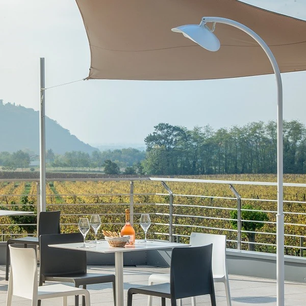 Créé par Antonio di Chiano pour Phormalab, le Lampadaire Chauffant Hotdoor Simple Modèle Arc Moyen fait partie d’une large collection de luminaires chauffants d’extérieur au design ultra contemporain. Très esthétique et performant, le Lampadaire Chauffant Hotdoor a la particularité d’être particulièrement économique puisqu’une 1H de fonctionnement revient à 0.27€ contre 1€ pour tout autre chauffage traditionnel de terrasse. Décliné en 2 types de puissances d’infrarouge: 1500W et 2000W, ce lampadaire chauffant permet de s’adapter selon les espaces intérieurs comme extérieurs. La puissance standard est la puissance 1500W qui diffuse de la chaleur sur une surface d’environ 16M² et la puissance 2000W sur environ 20m². Grâce à sa protection IPX5 qui le rend résistant aux éclaboussures d’eau et à la pluie, le chauffage Hotdoor s’installe sur une terrasse ou dans un jardin. Dès son allumage, le chauffage Hotdoor diffuse le maximum de sa capacité et apporte une chaleur agréable, sans bruit et sans odeur. Grâce à son diffuseur inclinable de forme ovale, le Lampadaire Chauffant Hotdoor permet d’orienter la chaleur d’un simple geste. Très design, il est disponible en finitions de coloris: structure blanc/diffuseur blanc, structure blanc/diffuseur noir, structure noir/diffuseur noir, structure noir/diffuseur blanc. Il est également décliné en 3 modèles de bras: modèle moyen, modèle court et modèle long afin de choisir la portée souhaitée. Ce chauffage d’extérieur est idéal pour les restaurants, bars, cafés, piscines, terrasses, centres commerciaux, jardins privés,….