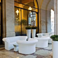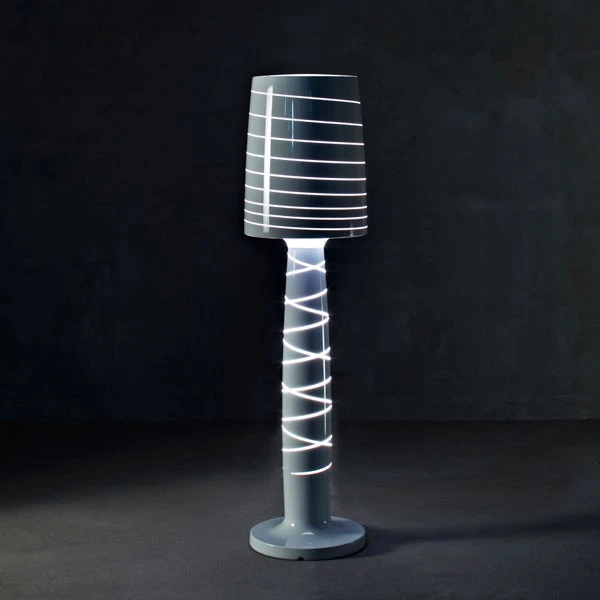 Ce lampadaire unique se distingue par son design resoluement contemporain ainsi qu’une luminosité étonnante. Hauteur : 150 cm , abat-jour 40 cm de diamètre ! Sa finition laquée lui confère un aspect brillant très moderne. Réalisé entièrement en polyéthylène, Miss Jane, très légère, s’utilise aussi bien à l’intérieur qu’à l’extérieur. Se décline en noir laqué, blanc laqué, rouge laqué or métallisé et argent métallisé. Miss Jane fait partie d’une collection complète de lampes d’extérieur et de pots lumineux.