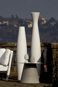 Sa hauteur majestueuse et sa ligne svelte lui confère un style très féminin et élégant souligné par l’effet plissé de sa surface.