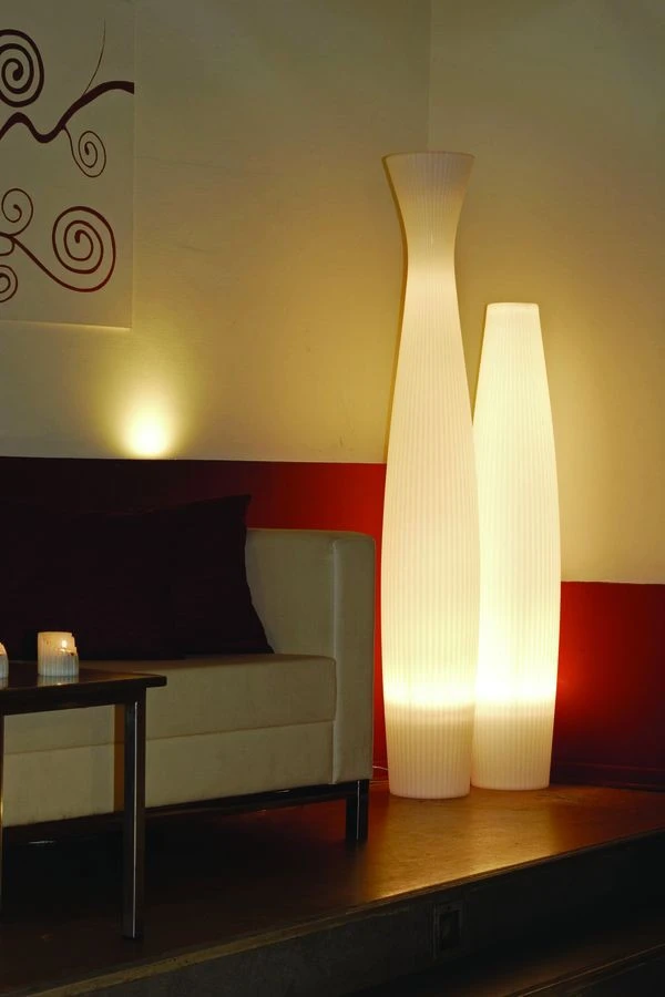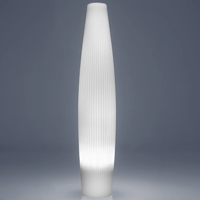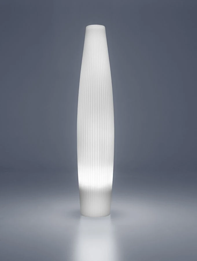 Le Lampadaire / Pot Lumineux Scarlett 140cm dessiné par Christophe Pillet pour Serralunga illumine tout espace avec voluptuosité.