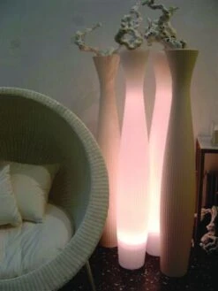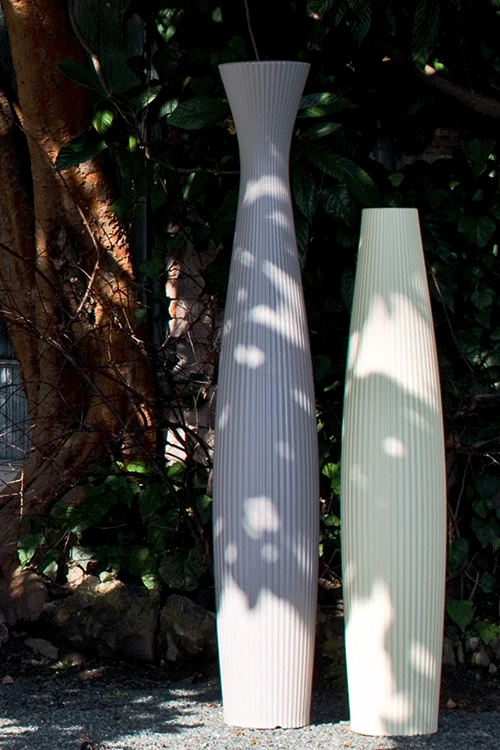 Sa hauteur majestueuse et sa ligne svelte lui confère un style très féminin et élégant souligné par l’effet plissé de sa surface.