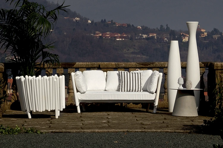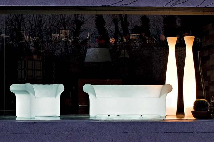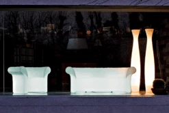 Le Lampadaire / Pot Lumineux Scarlett 180cm dessiné par Christophe Pillet pour Serralunga illumine tout espace avec voluptuosité.