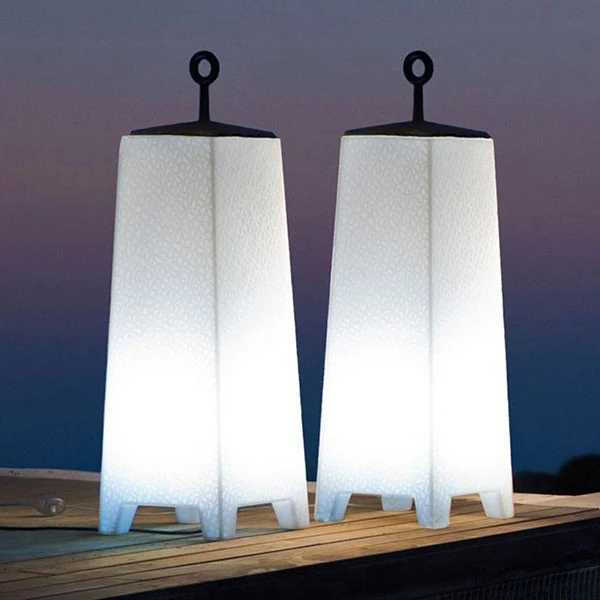 La Lampe A Poser Mora de chez Vondom se distingue par son look design. Imaginée par le designer Javier Mariscal, cette lampe à poser crée un contraste par transparence et offre ainsi une lumière tamisée et une ambiance douce au sein de l’espace à l’intérieur duquel elle se situe. Cette lampe 100% recyclable est d’une qualité inégalable grâce à sa matière en polyéthylène rotomoulé qui lui confère une haute résistance aux intempéries, aux UV et aux températures extrêmes. La lampe est déclinée en 2 dimensions et est facile à transporter. Posée sur une terrasse, au bord d’une piscine ou suspendue à un arbre grâce à son crochet, la Lampe A Poser Mora décorera vos espaces avec style et illuminera vos soirées d’été de mille feux.