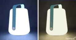 Sa poignée, dont le design d’inspire d’un casque audio, apporte un côté branché à cette lampe nomade. Cette poignée marque également le savoir-faire de la marque Fermob pour le travail du métal. Balad fonctionne sur batterie qui se recharge grâce à un simple cordon USB (de 2m). Elle offre une autnomie de 7H à 14H selon l’intensité de lumière choisie. Lumière dont la température et l’intensité peut se régler en un clin d’oeil: 2 températures de lumière (blanc froid 6000°K et blanc chaud 4000°K) ainsi que 2 intensités d’éclairage (100% et 50%) sont disponibles.