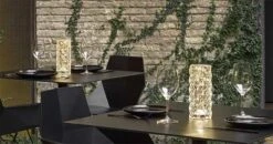La Lampe de Table Marquis de chez Vondom dessinée par JM Ferrero – estudi{h}ac apportera une touche art-déco à tous vos espaces de vies intérieurs et extérieurs. Elle est basée sur l’idée de créer une ambiance lumineuse unique en projetant un jeu de lumière sur son environnement grâce à la structure même de la lampe. Cette petite lampe de table sur batterie reprend le design à facettes de la fameuse collection Marquis de la marque espagnole.