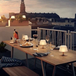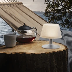 La Lampe de Table Solaire Sunlight de chez Eva Solo est une petite lampe nomade ultra pratique et chic à transporter et installer partout. Cette lampe sans fil à énergie solaire est parfaite pour illuminer vos soirées d’été dans un jardin comme sur un balcon. Avec ses petites dimensions, elle s’installe sur une table de repas un rebord de fenêtre, le long d’un mur ou encore dans une entrée. En plus d’être fonctionnelle, elle est 100% élégante avec son pied en aluminium et son abat jour en verre dépoli blanc. Son capteur solaire est caché à l’intérieur de sa structure pour un esthétisme optimal. Chargez votre lampe au soleil durant la journée et profitez ensuite de 20h de lumière pendant vos soirées en plein air! Sunlight a remporté le Product Design Award 2014 grâce à son concept d’utilisation sans impact CO2 et son look unique avec capteur solaire non visible: on adore! Et pour illuminer vos allées et vos plate-bandes, Sunlight existe également en version à planter.