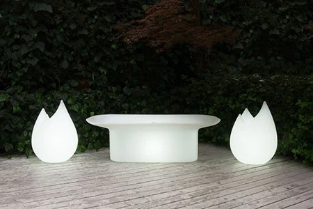 La Lampe Flame de chez Serralunga, est une création signée Sebastian Bergne. Son design à la forme très scrupturale évoquant une flamme, rappelle la connection entre la lumière et le feu. D’une forme douce et sensuelle, la lampe à poser joue sur les ombres et les nuances grâce à son volume original. En polyéthylène et disponible en version standard ( avec cable noir 3 mètres) ou version rechargeable avec contrôle par Bluetooth®, vous pourrez profiter pleinement de sa douce lumière en extérieur ou en intérieur selon vos souhaits.