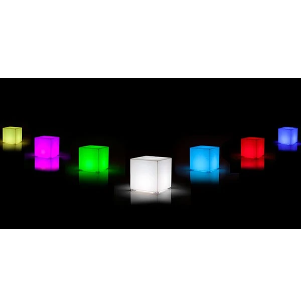La Lampe RGB Kubik de chez Vondom est une rencontre entre géométrie et design. Imaginée par la team Studio Vondom, cette lampe à poser à la forme carré est une source de lumière ultra tendance. Cette lampe 100% recyclable est d’une qualité inégalable grâce à sa matière en polyéthylène rotomoulé qui lui confère une haute résistance aux intempéries, aux UV et aux températures extrêmes. Grâce à sa télécommande vous pourrez changer à distance les couleurs de votre lampe. La Lampe Kubik donnera une touche contemporaine aussi bien à vos espaces intérieurs qu’extérieurs, tout en apportant une ambiance surprenante. Poseé aux quatre coins d’une terrasse, autour d’une piscine ou bien dans un salon, elle illuminera vos soirées entre amis.