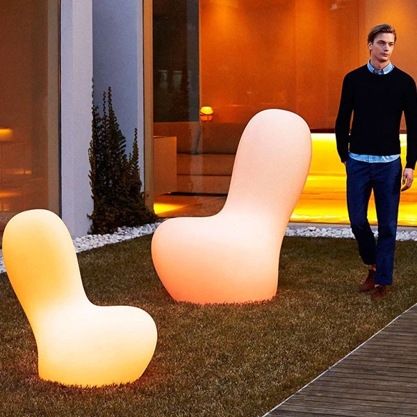 La Lampe Sabinas de chez Vondom est une rencontre entre élégance et design. Imaginée par Javier Mariscal, cette lampe à poser aux formes fluides fait allusion à des dunes de sable. Cette source de lumière 100% recyclable est d’une qualité inégalable grâce à sa matière en polyéthylène rotomoulé qui lui confère une haute résistance aux intempéries, aux UV et aux températures extrêmes. Grâce à sa télécommande vous pourrez changer à distance les couleurs de votre lampe. Déclinée en 2 tailles, la Lampe Sabinas donnera une touche de modernisme aussi bien à vos espaces intérieurs qu’extérieurs, tout en apportant une ambiance surprenante. Poseé aux quatre coins d’une terrasse, autour d’une piscine ou bien dans un salon, elle embellira avec style votre décoration et illuminera vos soirées entre amis.