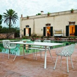 Le Lot De 4 Chaises Forest de chez Fast a été conçu par le fameux duo de designers Robby & Francesca Cantarutti. Ces chaises combinant design innovant et qualité unique, s’adapteront parfaitement à tous les styles de décoration. Leur structure en aluminium verni leur confère une haute résistance aux intempéries, aux UV et aux températures extrêmes. Décliné en plusieurs coloris, vous pourrez choisir le mobilier qui correspondra au mieux à vos envies. Forest donnera une touche de modernité à vos espaces intérieurs et extérieurs, tout en apportant confort et design. Sur une terrasse, autour d’une table ou bien dans un salon, il vous permettra de vous détendre à tout moment.
