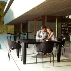 Le Lot de 4 Chaises Vases de chez Vondom est un lot de 4 chaises au look extravagant basé sur des lignes chics. Imaginée par le designer JM Ferrero, la collection Vases propose un ensemble d’objets à plusieurs facettes rappelant nettement un diamant. Ces chaises 100% recyclables sont d’une qualité inégalable grâce à leur matériau polypropylène injecté et renforcé de fibre de verre. Leur pieds sont réalisés en acier inoxydable vernissé pour s’harmoniser avec le siège. Leur fabrication leur offre une haute résistance aux intempéries, aux UV et aux températures extrêmes. Déclinées en 5 coloris tendances, les Chaises Vases offriront une touche ultra design aussi bien à vos espaces intérieurs qu’extérieurs. Installées dans un salon, au bord d’une piscine ou sur une terrasse, elles apporteront un cachet fou à votre décoration.